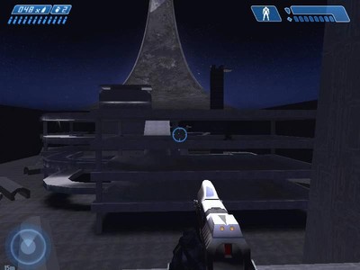An large parking ramp style structure, two large base buildings with snipte platforms and high Banchee landing areas
