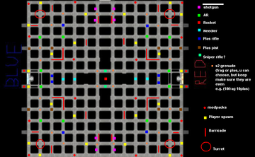 This is a flat map, littered with barricades for you to hide behind. Watch your sides, for enemies!