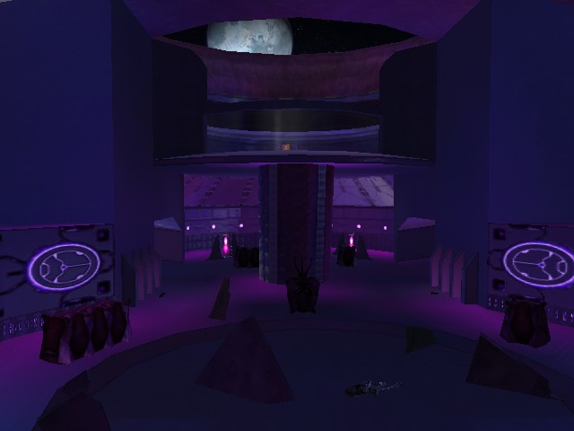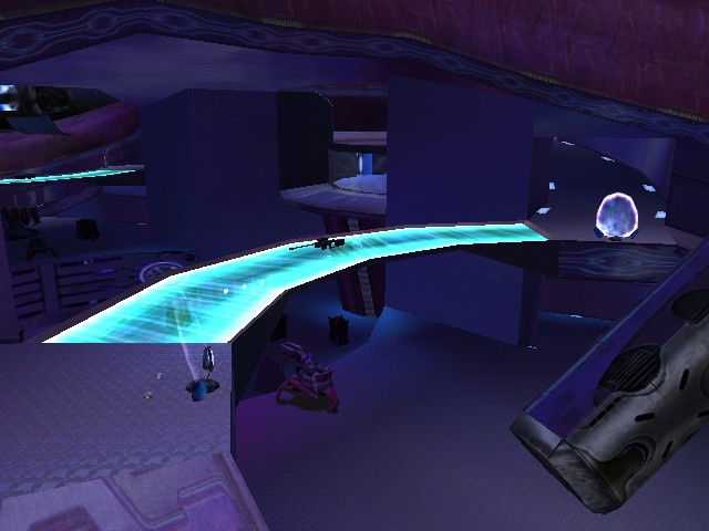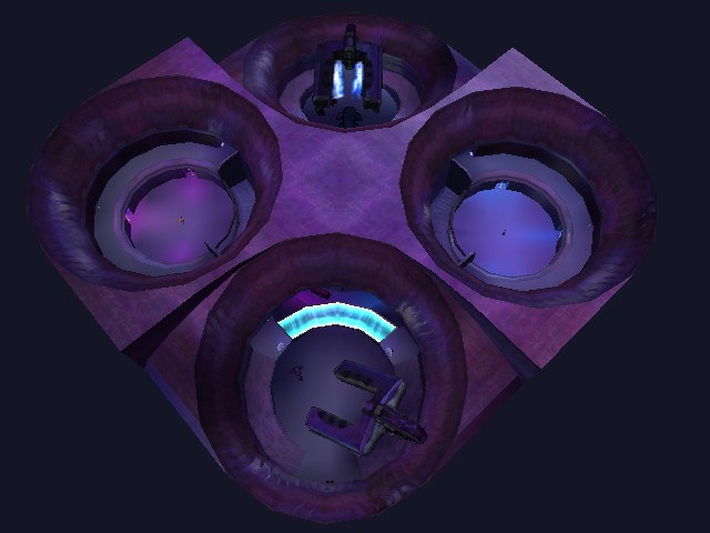 This is a small, simple, symmetric map with a covie theme. The flag rooms are on the third floor on each side, reachable either through ramps along the sides of the map, or through a set of teleporters at either end of the map. Covenant debris litters the stage. It is designed for all gametypes.