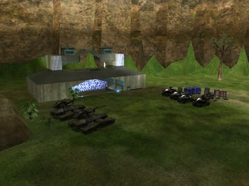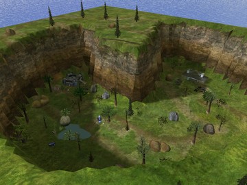 This is a small forest with a lake in center where the red base is a Ice Fields base and blue base is a small tunnel