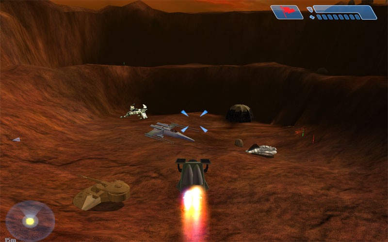 CTF: Grab either the Galactic Empire Flag (blue) or the Rebel Alliance Flag (red) and take flight in a fast flying vehicle. All vehicles, especially the AAT and AT-ET are capable of taking you down and will defend your base adequately, but not completely. The Jango Blaster will defend you against any vehicle and is the AAT's enemy. Default CTF is a blast!