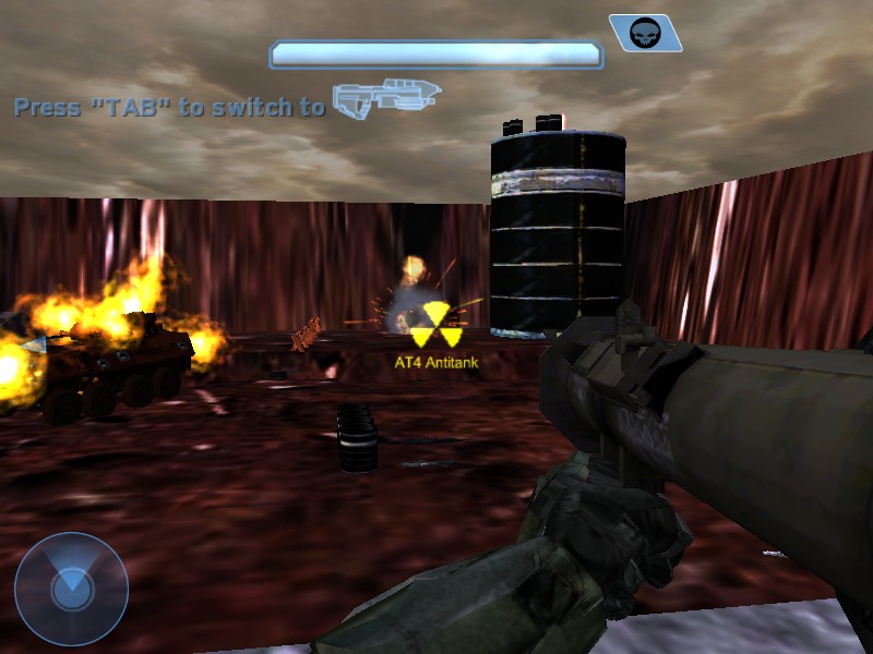 The weapons include saw machine gun v2 (kingfish999's with better animations and textures), railgun, my moded cov_carbine, silenced magnum, shield drainer, m24 'camo', halo3 assult rifle, rpg, m16_m203, g36e, battle rifle, my improved radio detonated c4 charges, my improved mortar grenade that is now more accurate with its call down mortars, my improved army mines that now only show the black springs when planted which makes it harder to see and easyer to step on, my halo2 hunter weapon, dual mpk5's, halo 3 shotgun, plasma pistol, brute spiker, my moded locking AT4 Antitank (derived from kingfish999's at4 rocket launcher)" i created a cooler missle model for