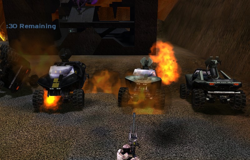 The story is it was bombed, the vehicles are flipped, the place is in flames while weapons and ammo are everywhere.