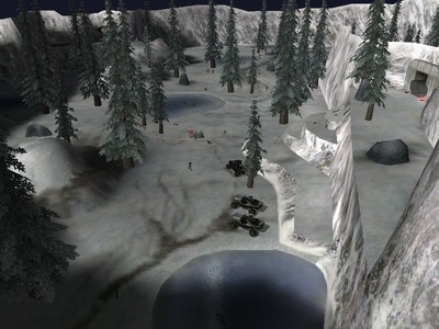 The Marines spawn at red base, and are allied with you. Weapons and health packs spawn on the bottom floor of their base, and outside you can find three warthogs. The Covenant hold the blue base, and have access to four plasma turrets and four ghosts. Two banshees are also parked on top of the small cliffs outside their base, but the AI cannot use them. You can, however...