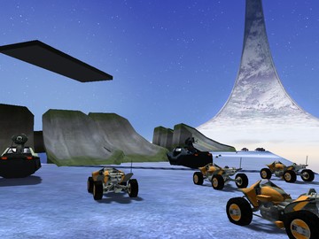 Description: A really high map which is mainly for skydiving, with many different land vehicles on the top of the map and ramps which lead off the edge. Bottom has 2 teleporters which are covered by automatic doors because I got annoyed when I wanted one of the many needlers down there and I slid straight into a teleporter to the top. It has a platform about halfway down which holds 2 Boom Turrents.