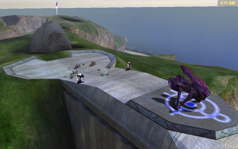 when you challenge the bosses at the end.. the brutes, hunters,, prophet, ect. there will be a teleporter on the other side. go to it and a cutscene shall start.. when the cutscene is done. that means that the game ends... so there u have it... containment island part 1..... be looking for "traped" part 2 of the map containment island. coming soon...